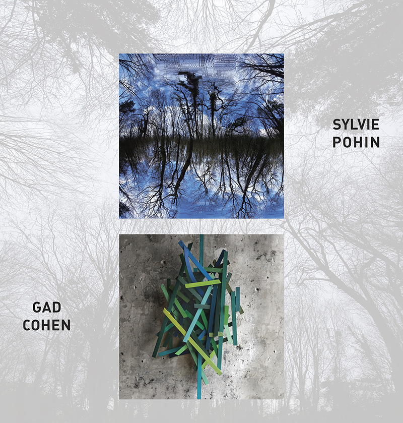 Les sculptures en bois de Gad Cohen s’intègrent à merveille dans ce travail du rêve. Il est comme un maître en illusion lorsqu’il recycle les bouts de bois dont il dispose à proximité. Il leur donne une vie virtuelle dans des assemblages qui dialoguent intimement avec le travail de Sylvie Pohin. Rassemblés en superpositions touffues et serrées, ses bois ménagent une profondeur, une traversée des apparences et des trouées vers la lumière, vers des clairières inédites, comme les photographies qu’ils côtoient. Ils peuvent se présenter comme des signes de ponctuation en couleur, des rythmes introduits dans une écriture indéchiffrable, des vibrations musicales où retentit la voix impénétrable de la nature. Ses sculptures dans ce monde de virtualités demeurent des ébauches solidement coefficientées en présence et en aura, avec un je ne sais quoi bien à lui, qu’on pourrait appeler une « concrescence »…
