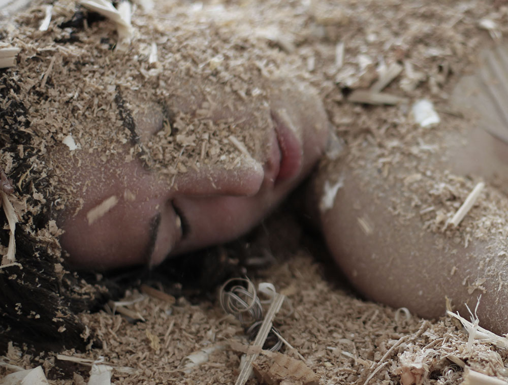 Lucie Linder utilise les métaphores de la mer pour parler de la femme. Tout comme sa démarche autour de la nature et de l’immatériel, les corps au contact des matières s’effacent au profit d’une énergie sacrée. Plis, copeaux de bois, porcelaines se transforment en paysage épidermique. La fragilité en devient une force. La dentelle, une peau. (Lucie Linder)